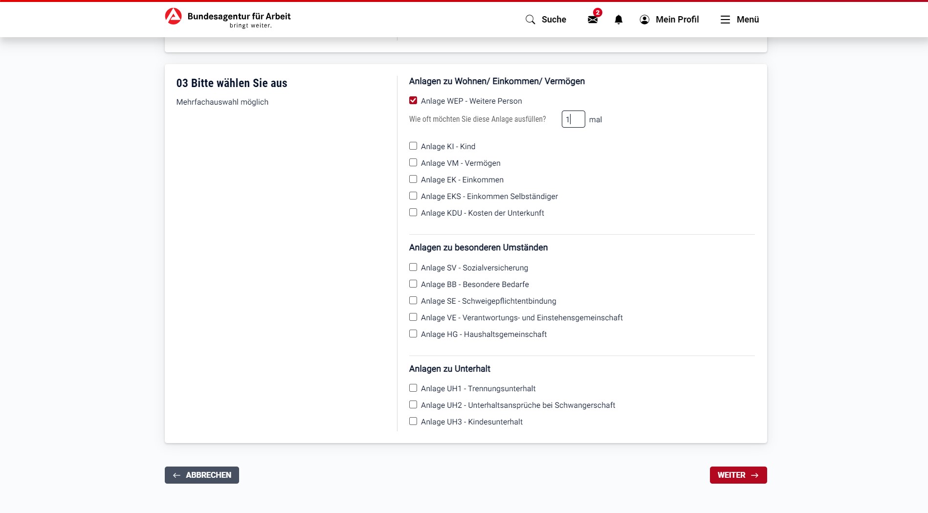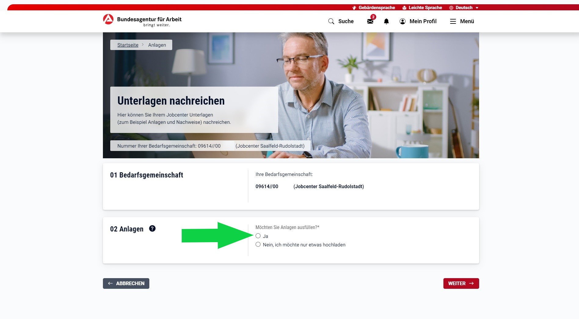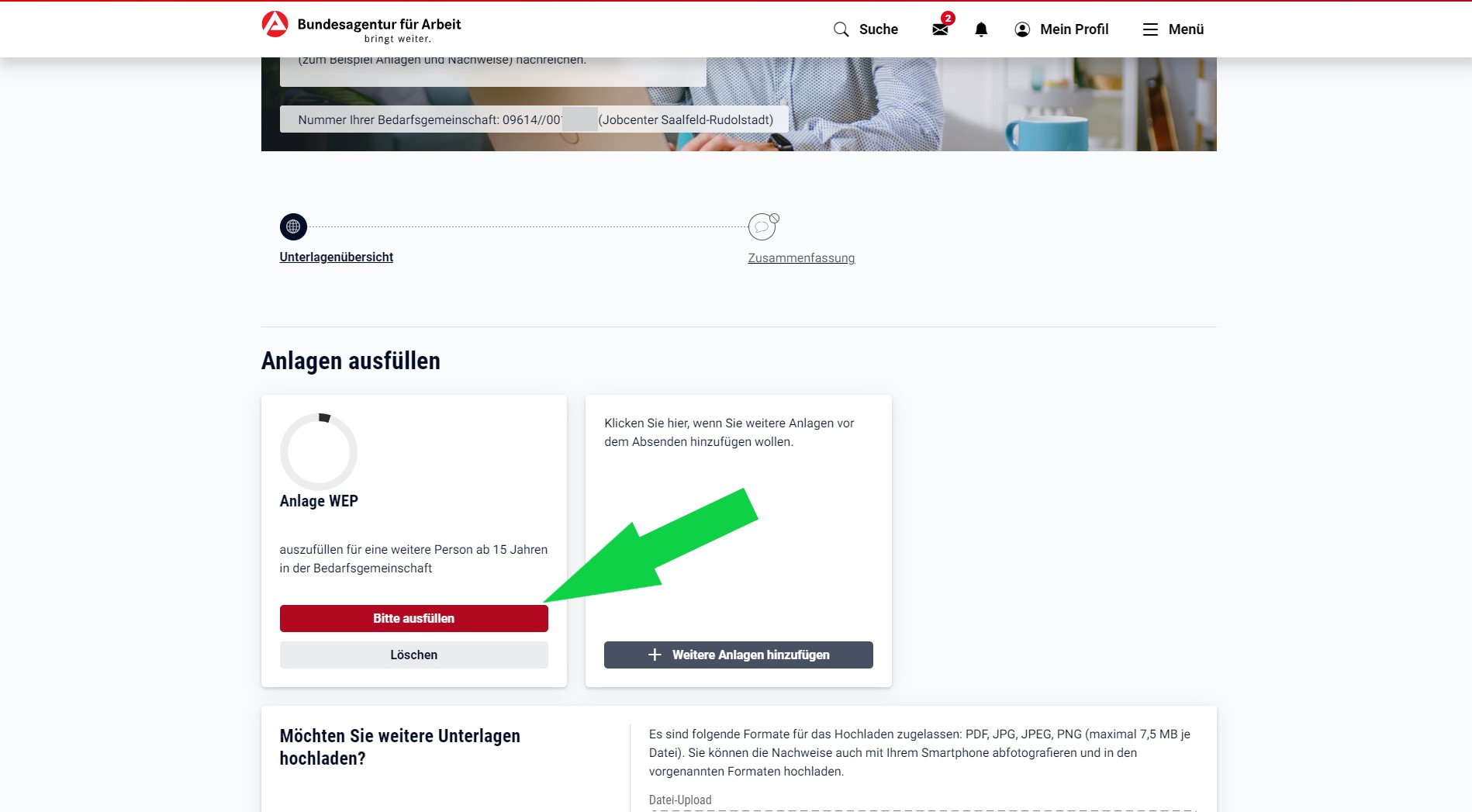 1. Besuchen Sie jobcenter.digital um eine Anlage online auszufüllen.