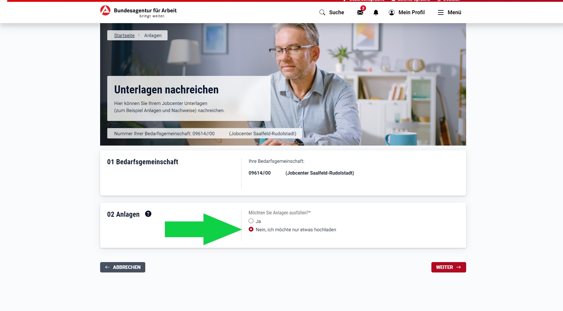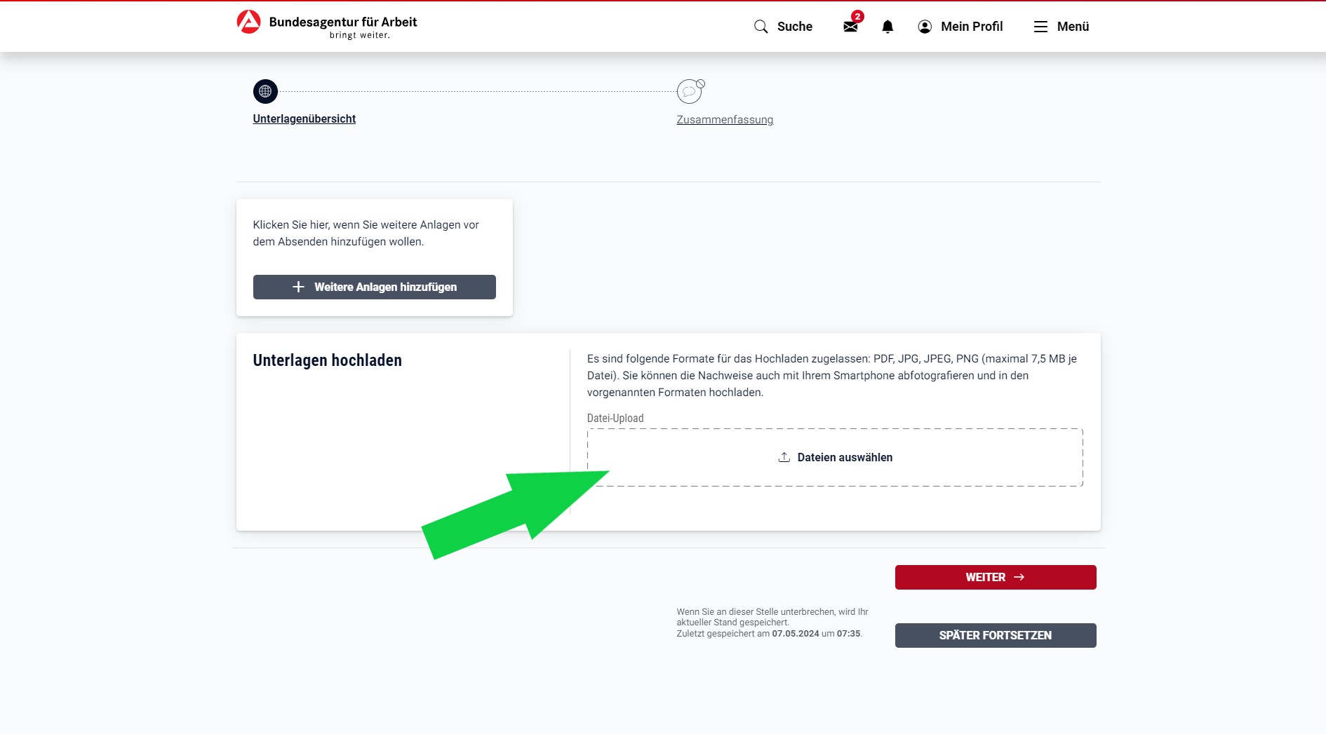 Zudem: Mehrseitige Dokumente (z.B. Arbeitsverträge, Mietverträge etc.) lassen sich zu einem PDF-Dokument zusammenfassen und so in einem Schritt in jobcenter.digital hochladen.